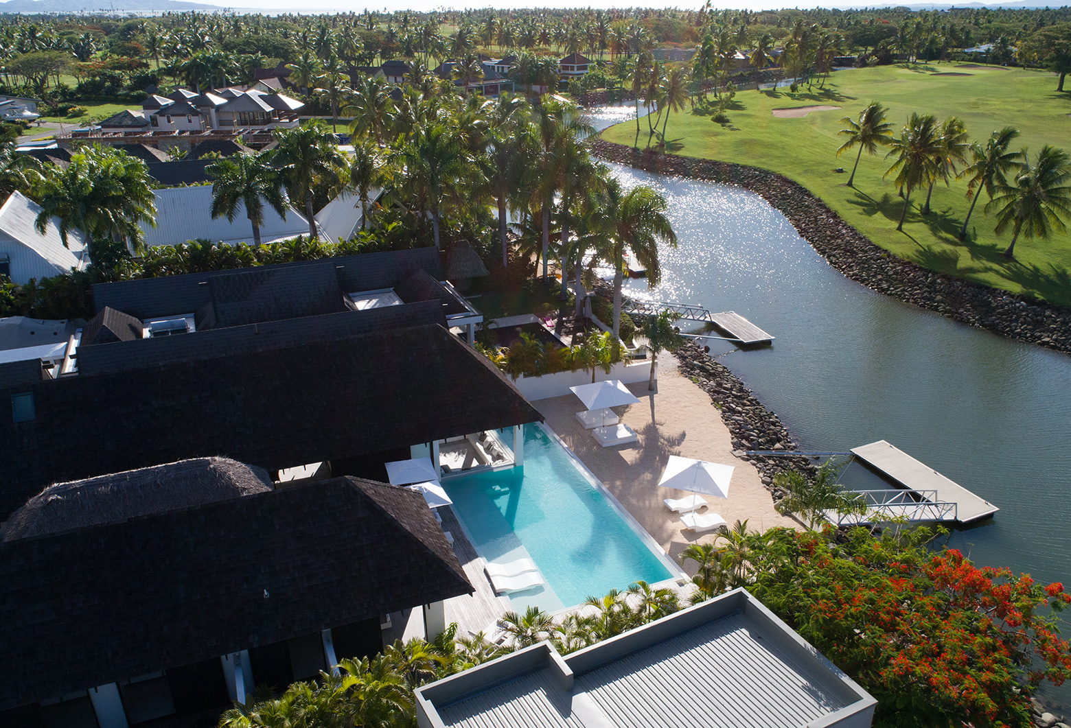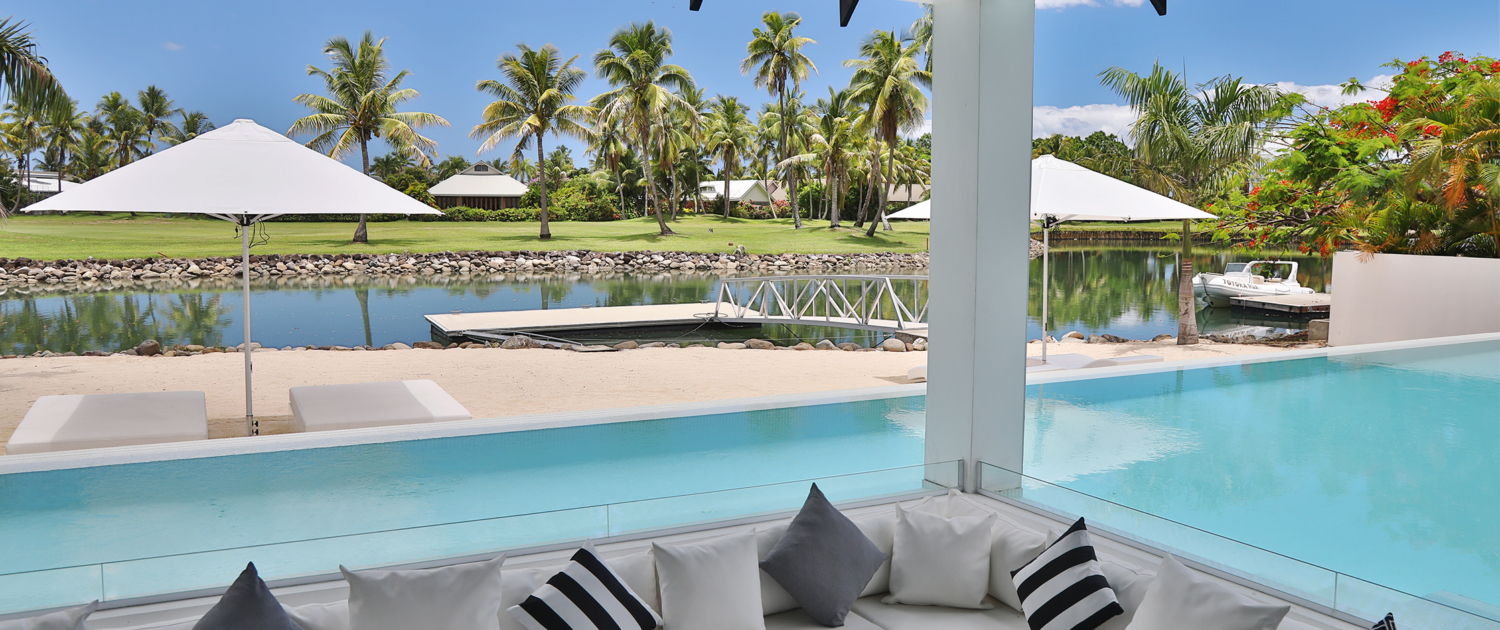 This impressive open plan, contemporary residence, is situated in the gated community of Sovereign Quays, Denarau overlooking the waterways and Denarau International Golf Course. With a north facing aspect you are truly in paradise!